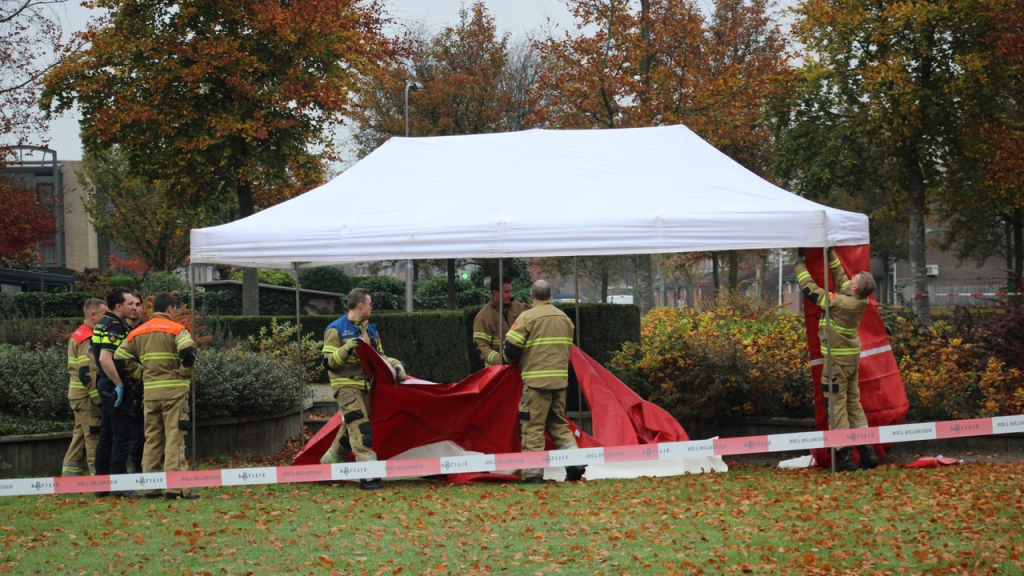 De melding kwam rond 08.48 uur binnen bij de hulpdiensten. De ontdekking werd gedaan door buurtbewoner Giel, die op dat moment zijn twee kleine hondjes aan het uitlaten was. “Een van mijn Pomchi’s begon ineens te grommen en trok richting het parkje,” vertelt hij. “Toen ik dichterbij kwam, zag ik een koffer staan. De hond liep ernaartoe en opeens zag ik een vrouw op de grond liggen. Ik dacht eerst dat ze misschien sliep. Ik tikte haar nog even aan en zei: ‘Hallo juffrouw, wakker worden.’ Maar ze reageerde helemaal niet.”Geschrokken bracht Giel zijn honden snel terug naar huis en belde onmiddellijk het alarmnummer 112. Binnen enkele minuten arriveerden meerdere politie-eenheden en brandweerwagens ter plaatse. De brandweer plaatste schermen rondom het lichaam om het zicht af te schermen voor voorbijgangers, terwijl forensische specialisten begonnen met een uitgebreid sporenonderzoek.