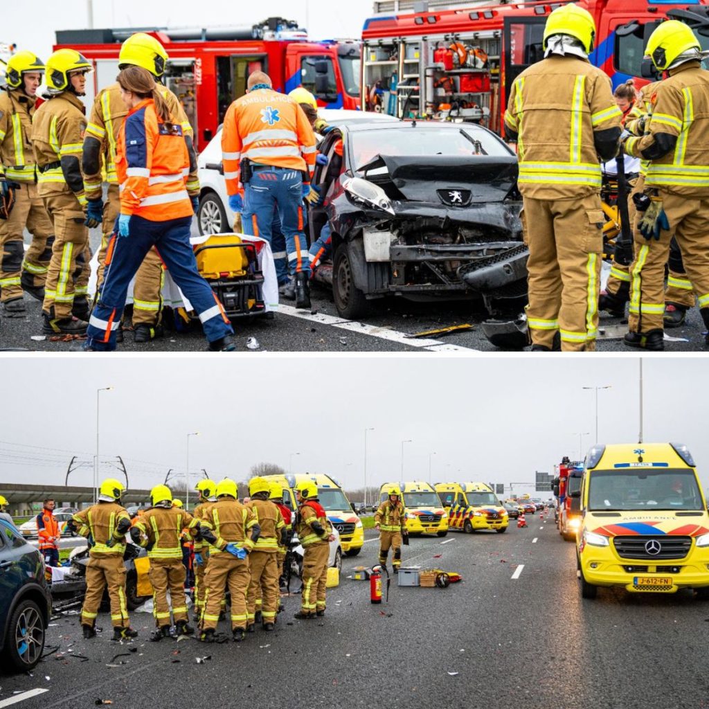 Snelweg nog uren dicht na ongeluk met zes auto’s en vrachtwagen