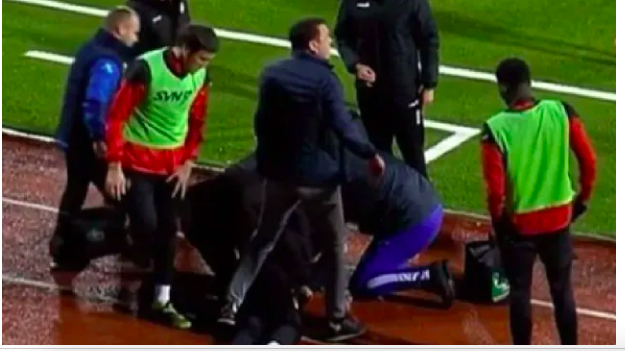 Op beelden is te zien hoe stafleden en spelers huilend op het veld liggen en niet kunnen bevatten wat er gebeurd is.