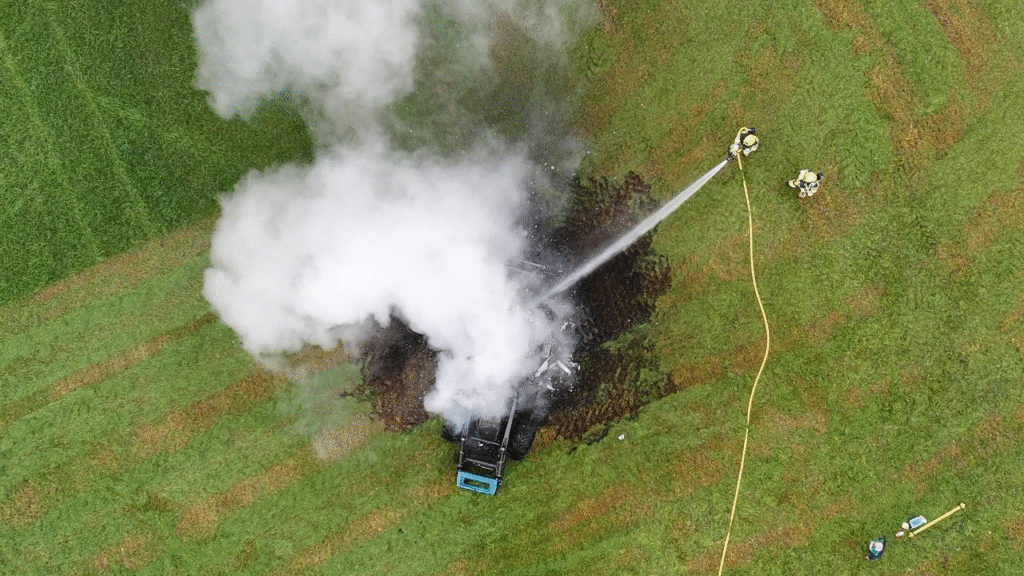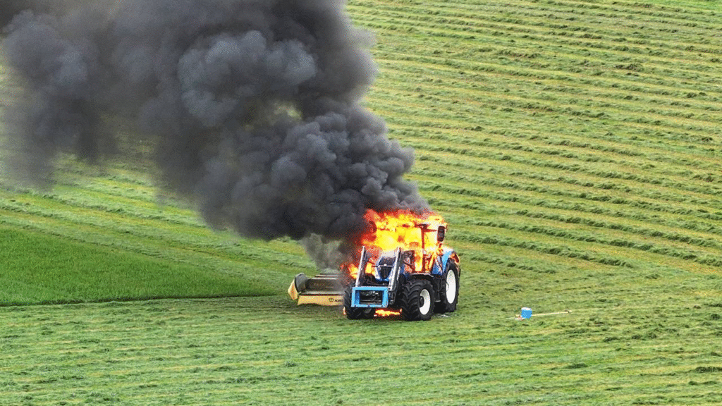 Maandagmiddag is de brandweer uitgerukt naar de Leuthsestraat in Ooij vanwege een tractorbrand. Het voertuig vloog in brand tijdens maaiwerkzaamheden op een perceel.