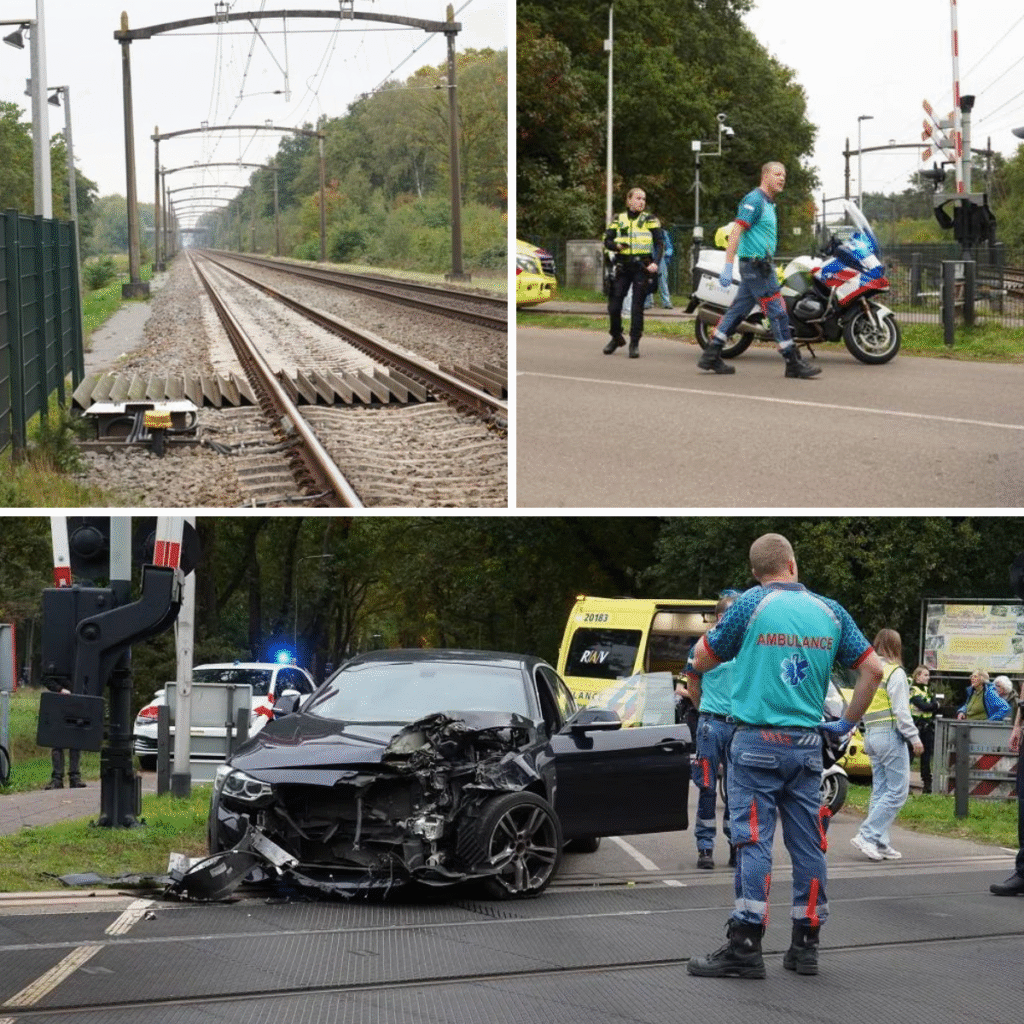 Trein ramt auto op het spoor, automobilist gewond
