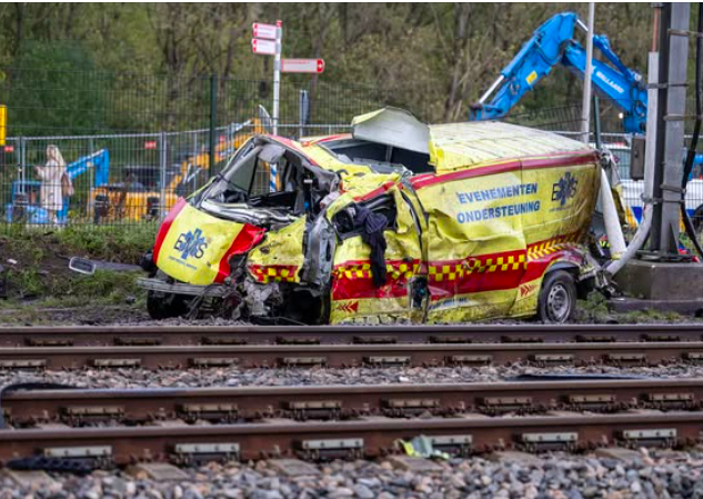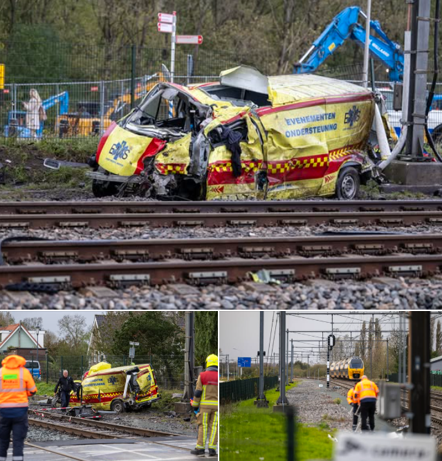 HALFWEG – Een evenementenambulance van EMS is maandagochtend zwaar beschadigd geraakt bij een botsing met een trein.