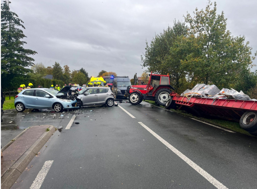 Op de Harderwijkerweg (N310) net buiten Harskamp zijn dinsdagochtend iets na 10.00 uur twee auto’s en een trekker met aanhanger betrokken geraakt bij een flinke aanrijding. Eén persoon is met onbekend letsel overgebracht naar het ziekenhuis.