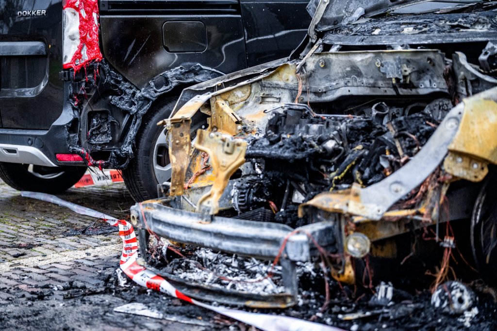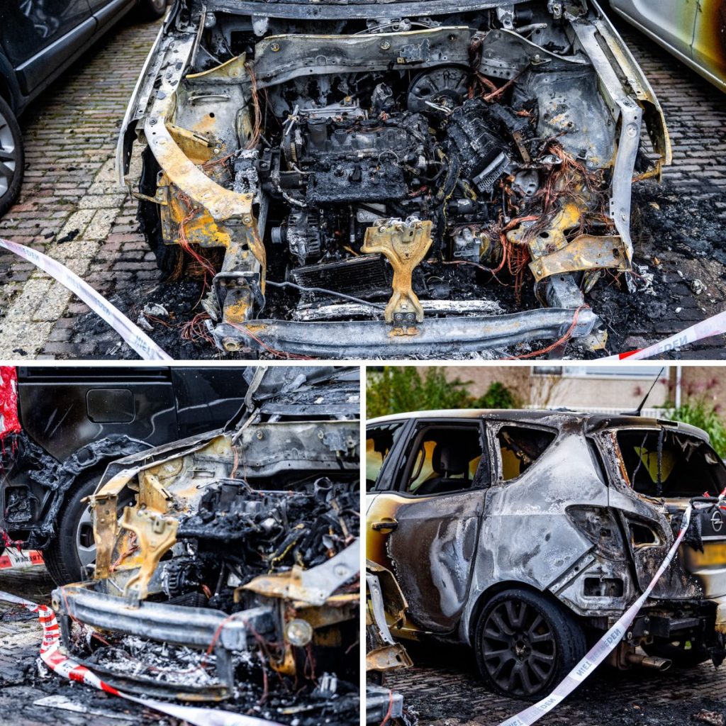 De brandweer werd rond 04.23 uur gealarmeerd. Twee voertuigen raakten zwaar beschadigd, terwijl een derde auto schade opliep bij het rechterachterwiel, waar het kunststof deels was gesmolten. Omwonenden meldden dat zij werden gewekt door twee harde knallen, waarna zij meerdere stemmen hoorden en enkele scooters zagen wegrijden.