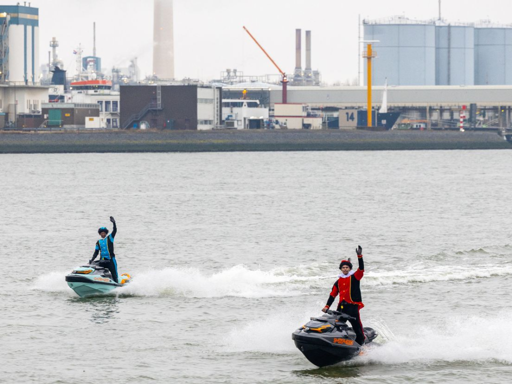 In Vlaardingen hadden Sint en Piet naast de traditiegetrouwe stoomboot wel een heel bijzonder vaartuig: de eerste pieten kwamen aan op jetski’s. In alle vroegte zagen honderden kinderen de spectaculaire entree van de jetskipieten.