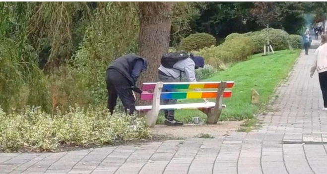 De mannen uit het volgende filmpje zijn het niet helemaal eens met een regenboogbankje in hun buurt. De volwassen Liburgers besloten om zwarte verf en kwasten te halen om het bankje een nieuw kleurtje te geven. Wat vinden jullie van deze actie?