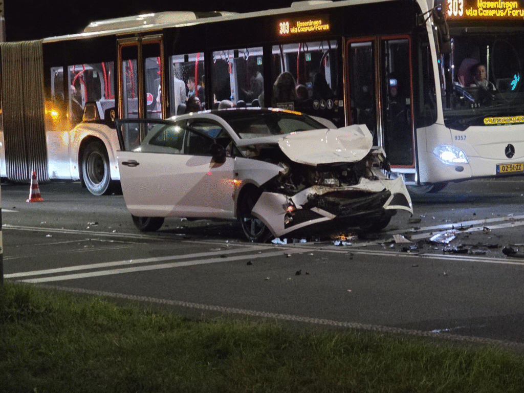 Op de Dr. Willem Dreeslaan zijn vrijdagavond rond 19:30 uur twee personenauto’s met kracht op elkaar gebotst. Een witte auto reed achterop een stilstaande auto die voor het verkeerslicht wachtte. De bestuurder van de witte auto had de situatie te laat door.