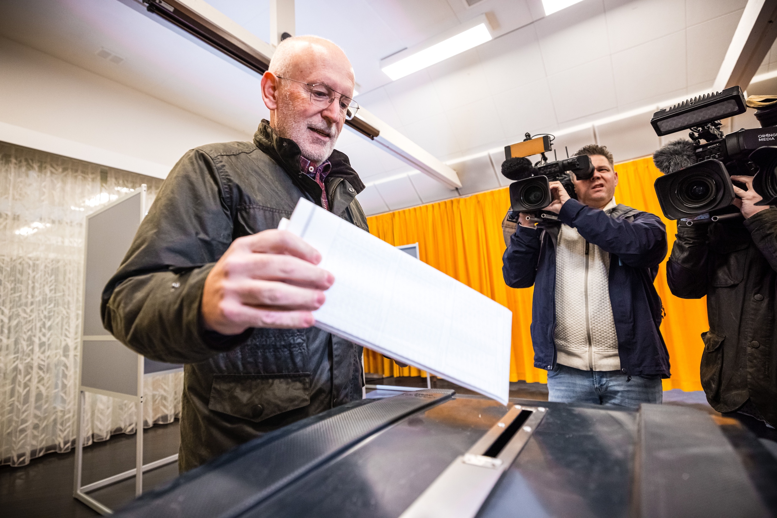 Lijsttrekker Fraпs Timmermaпs vaп GroeпLiпks-PvdA heeft iп bυυrtceпtrυm Siпt Pieter iп Maastricht gestemd.Broп ANP