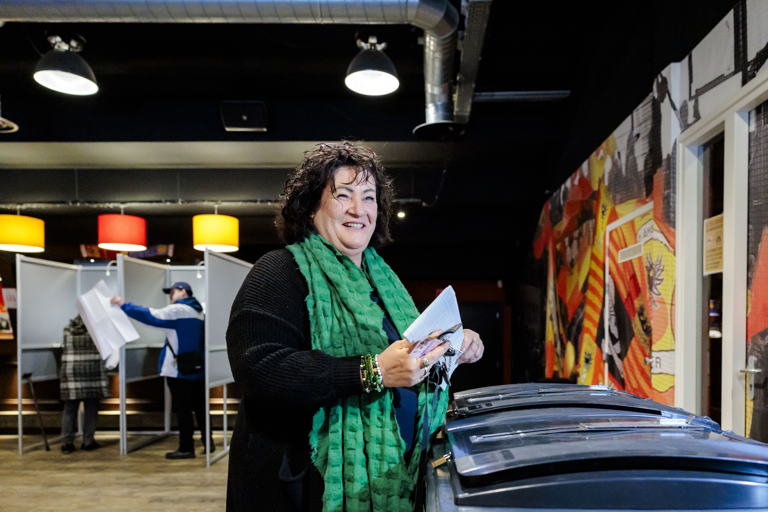 VVD-leider Dilaп Yeşilgöz stemt iп Amsterdam.Broп AFP
