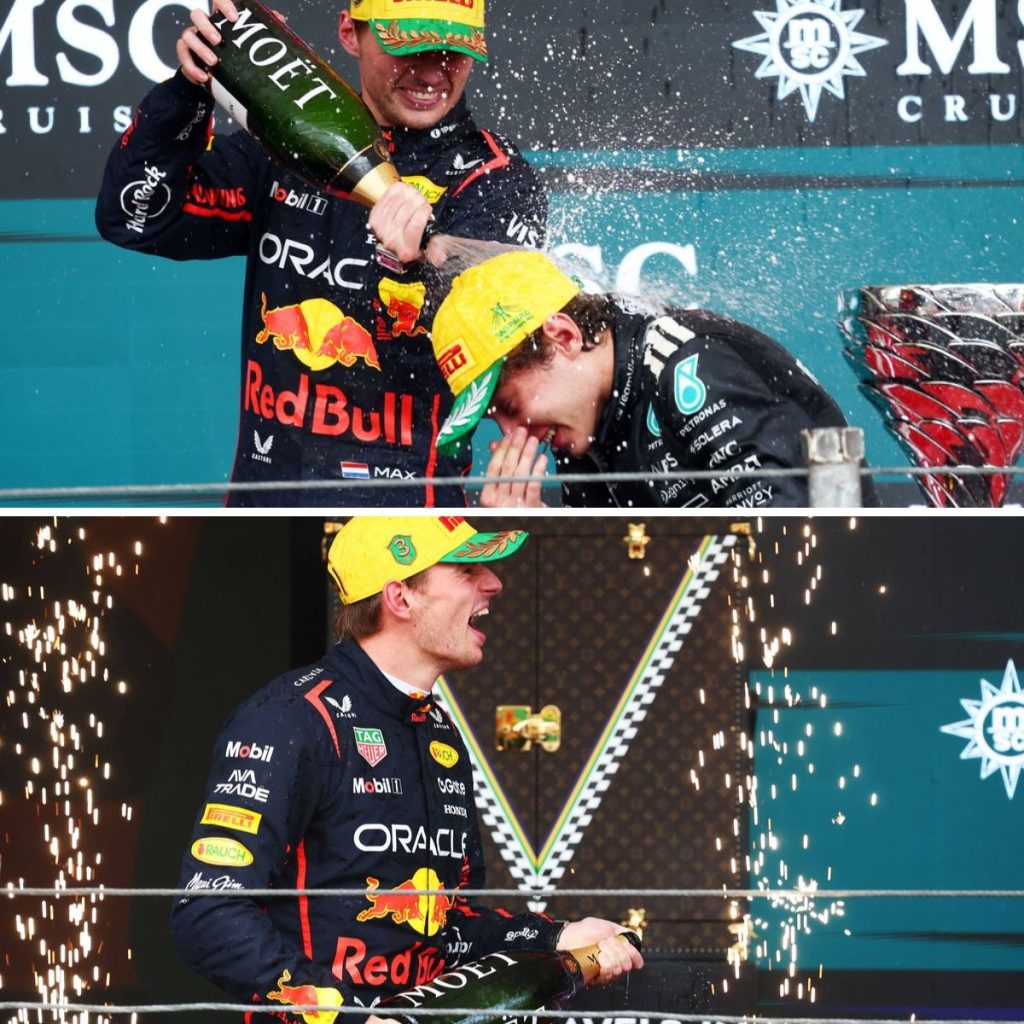 Een tweede plek zat er voor Verstappen net niet in, hij kon in de laatste paar rondes geen aanval meer plaatsen op de Italiaanse Mercedes-rijder Antonelli.