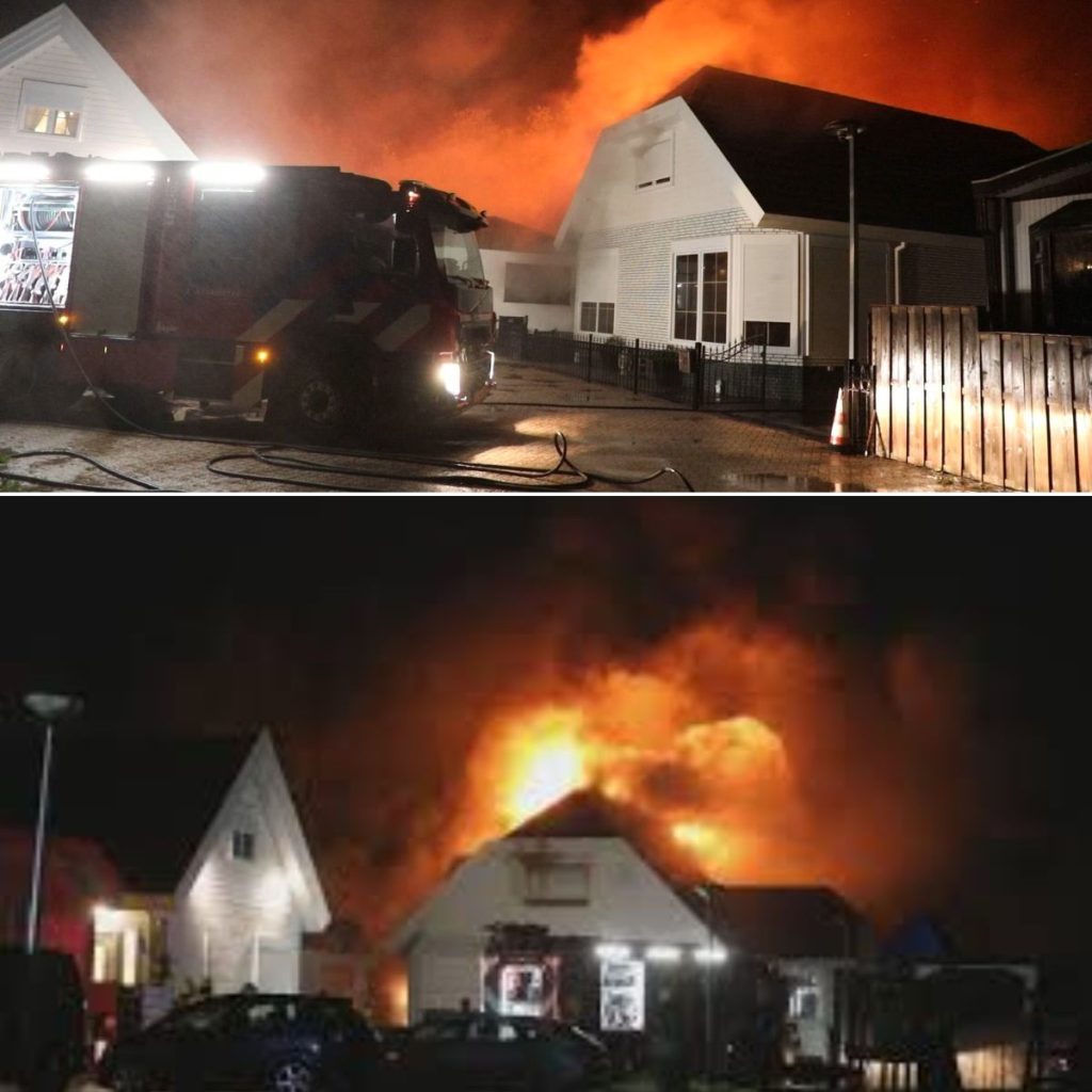De vlammen waren bij aankomst van de brandweer al metershoog. De bewoners konden gelukkig op tijd naar buiten. “Alle bewoners zijn veilig”, meldt de veiligheidsregio. De brandweer rukte met groot materieel uit om te voorkomen dat het vuur verder zou overslaan naar andere woningen op het kamp.