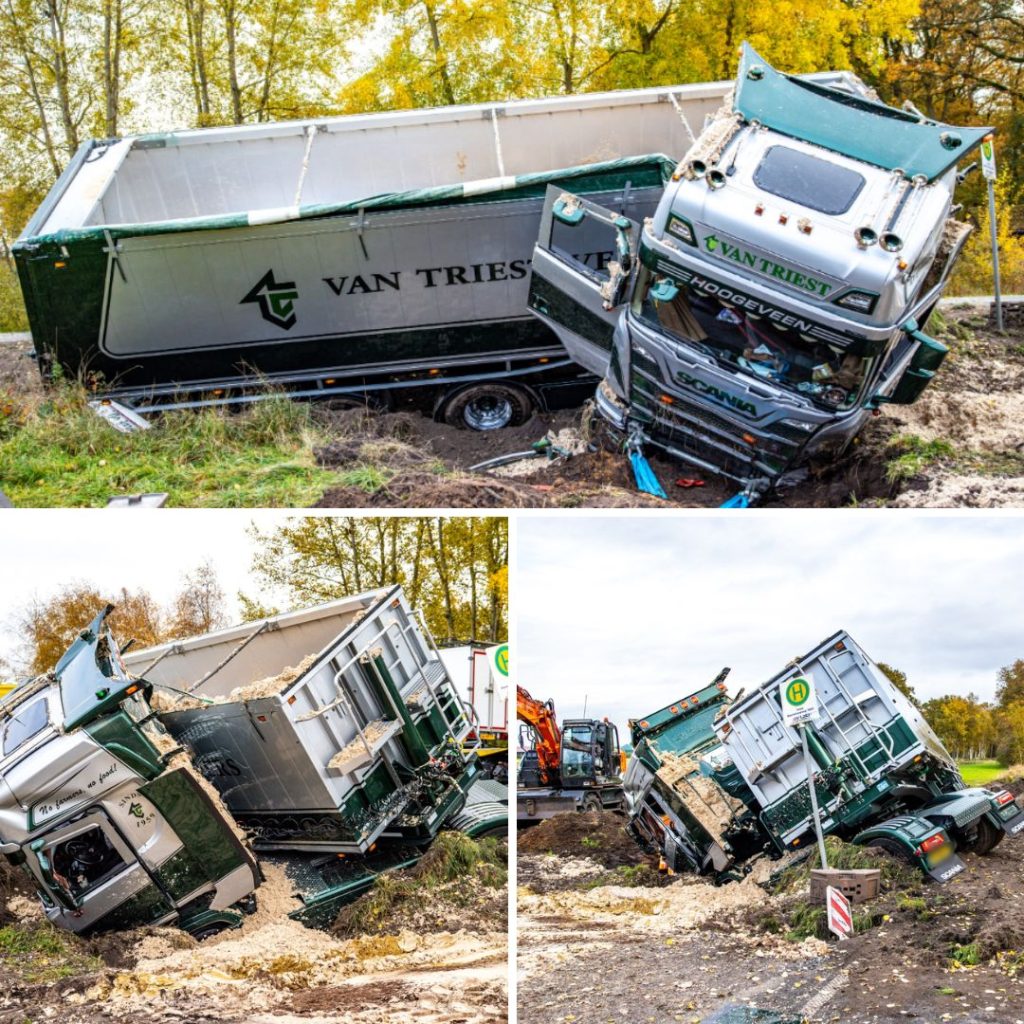 EMLICHHEIM (DUITSLAND) – Op de B403 tussen Emlichheim en Laar is maandagmiddag rond 12.15 uur een vrachtwagen van de weg geraakt. Het gaat om een voertuig van de firma Van Triest uit Hoogeveen, dat in een greppel naast de weg tot stilstand kwam.