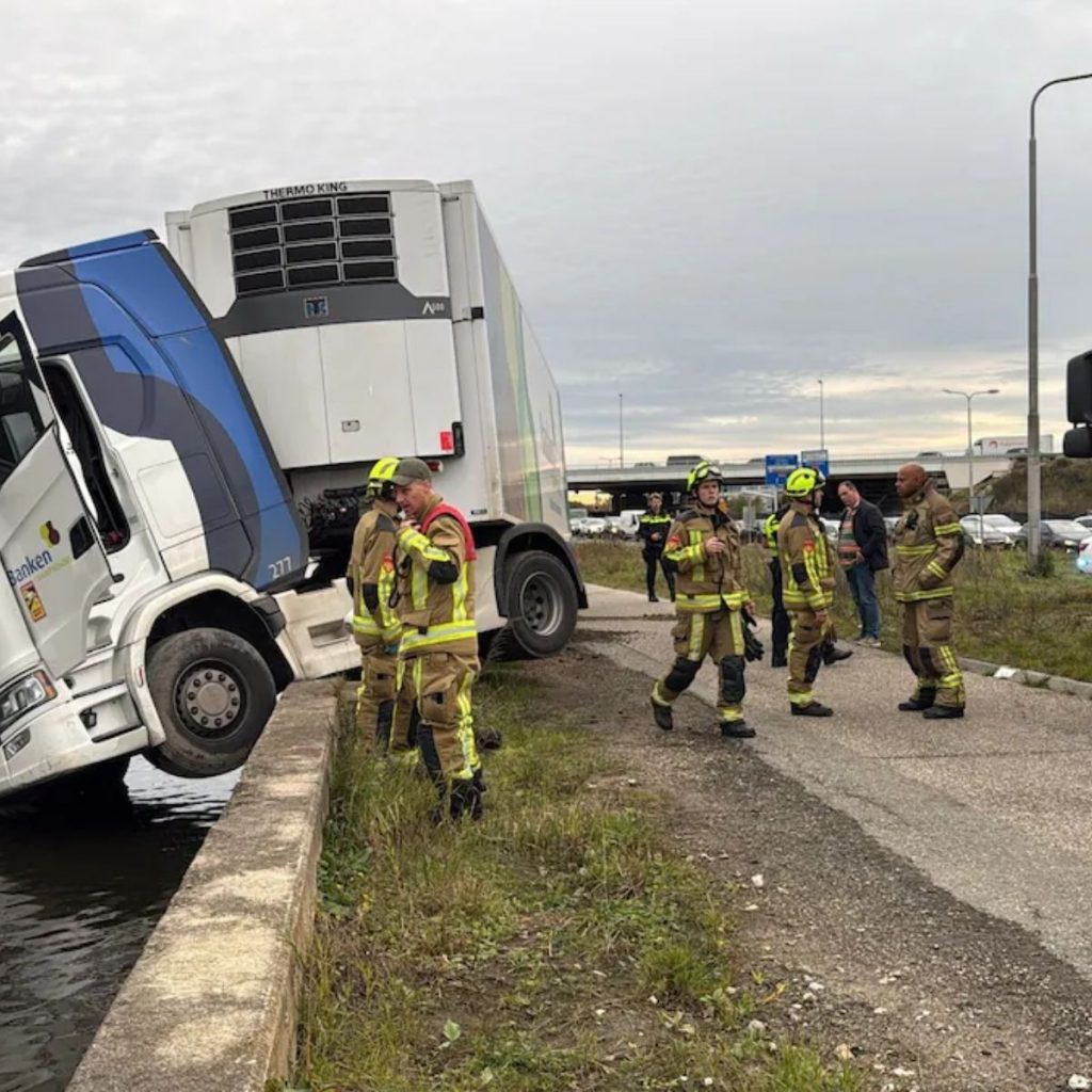 Een vrachtwagenchauffeur is vrijdagavond onwel geworden tijdens het rijden in Badhoevedorp. De vrachtwagen knalde over een betonnen rand, de cabine bungelde daardoor boven het water. De chauffeur is door brandweerlieden uit de cabine gehaald. Hij is overgebracht naar het ziekenhuis.