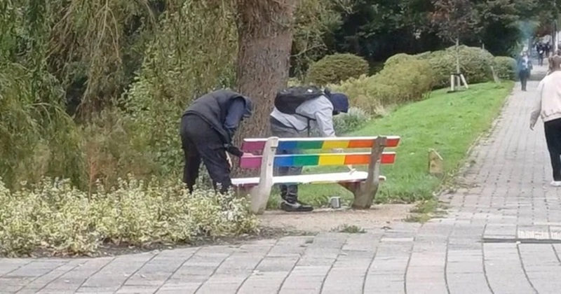 De mannen uit het volgende filmpje zijn het niet helemaal eens met een regenboogbankje in hun buurt. De volwassen Liburgers besloten om zwarte verf en kwasten te halen om het bankje een nieuw kleurtje te geven. Wat vinden jullie van deze actie?