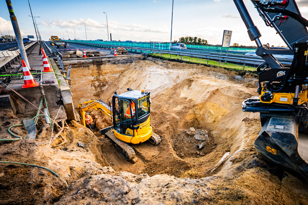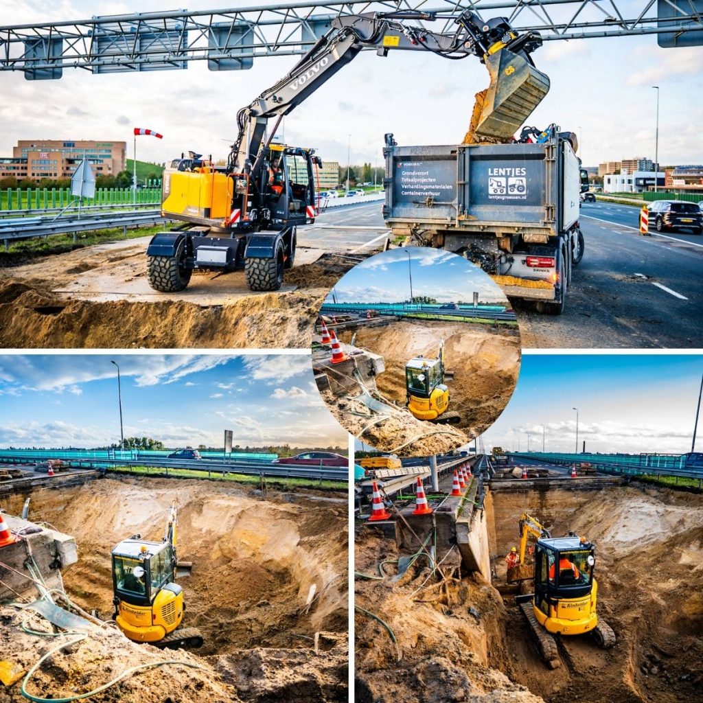 De komende dagen wordt zand weggegraven tot aan de fundering, wordt een nieuwe wand geplaatst en de snelweg opnieuw geasfalteerd. De werkzaamheden duren naar verwachting tot en met zondag 26 oktober.