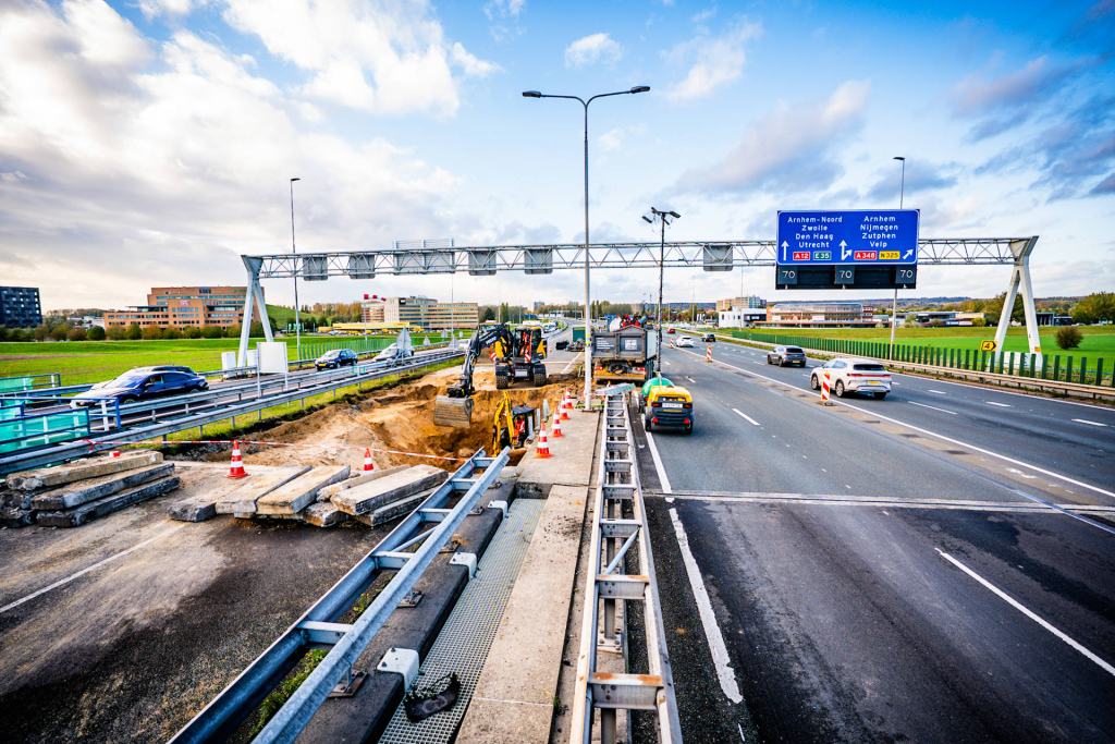 Tijdens werkzaamheden in de nacht van woensdag 22 op donderdag 23 oktober is een sinkhole ontdekt in de middenberm van het talud langs de A12 tussen knooppunt Velperbroek en de IJsselbruggen.